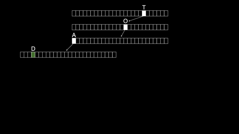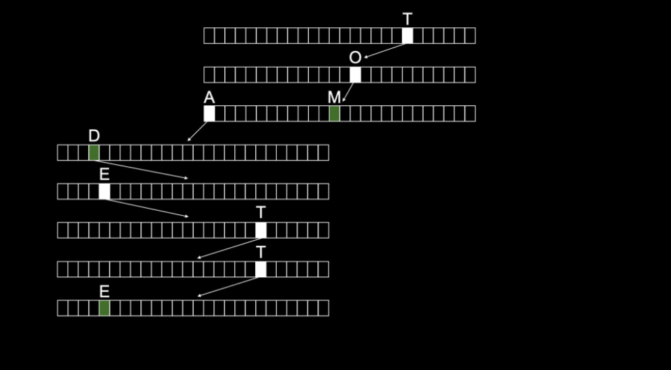 For example, a word 'Toad' would be stored as follows: