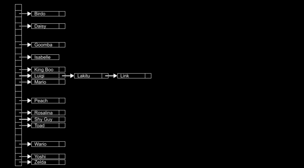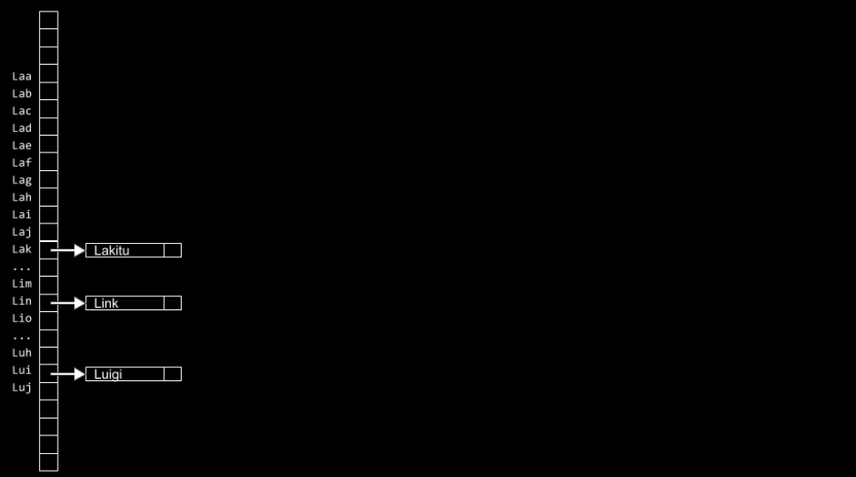 A hash table could be imagined as follows: